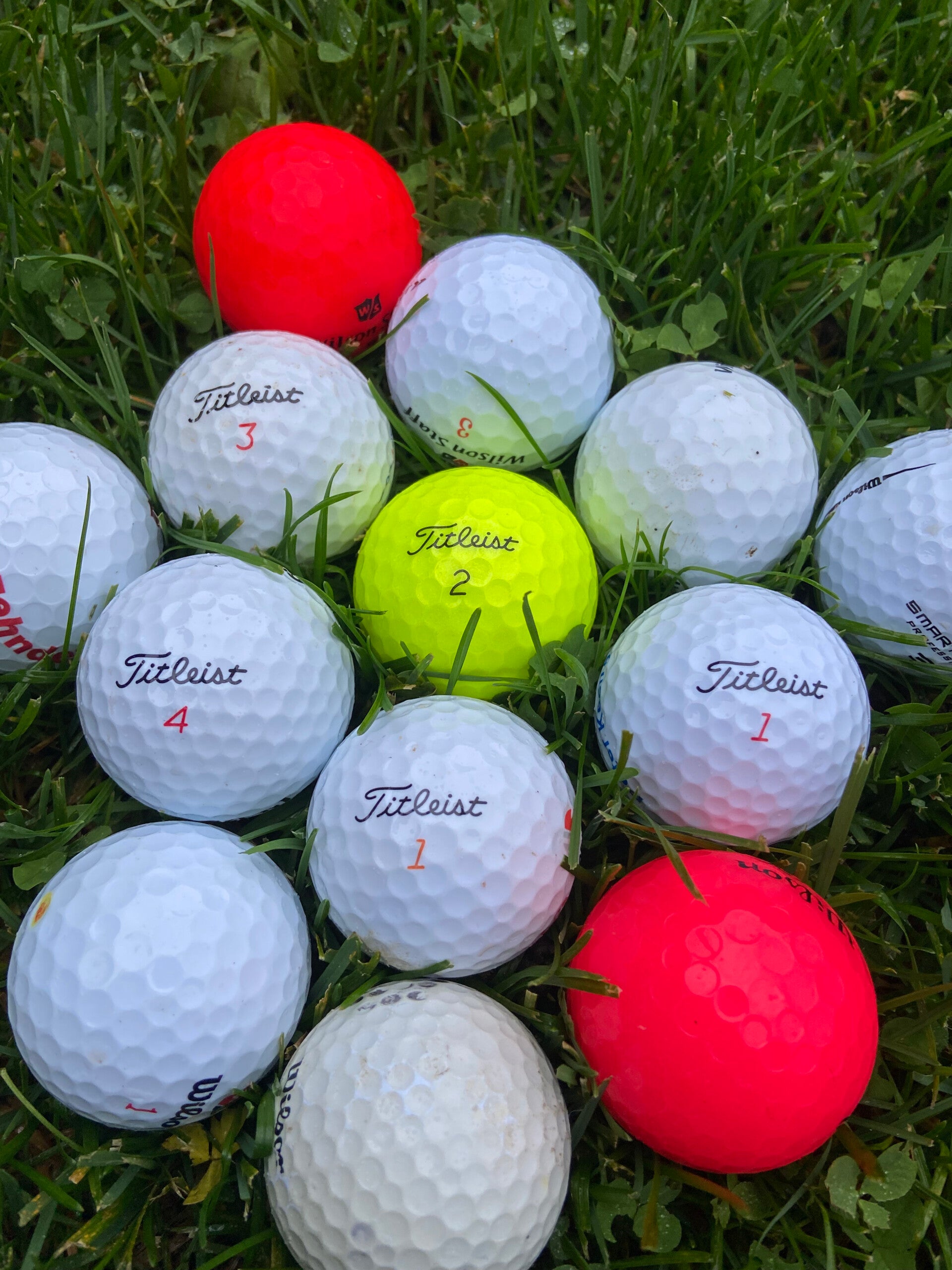 Vijf Titleist golfballen van een goede staat.
